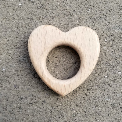 Natural Wooden Carved Heart Shape Teething Rings