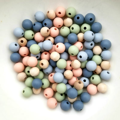 Set of 100 Mixed Maple 8mm & Silicone 9mm Round Silicone Beads