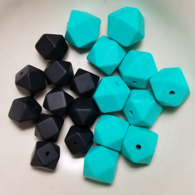 20 Piece Set of Mini and Regular Hexagon Silicone Beads - Turquoise/Black